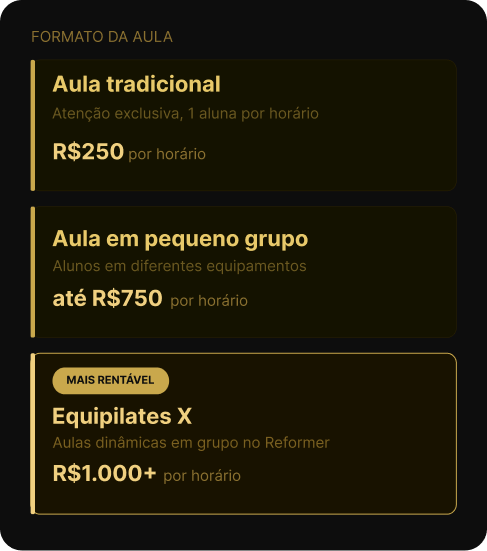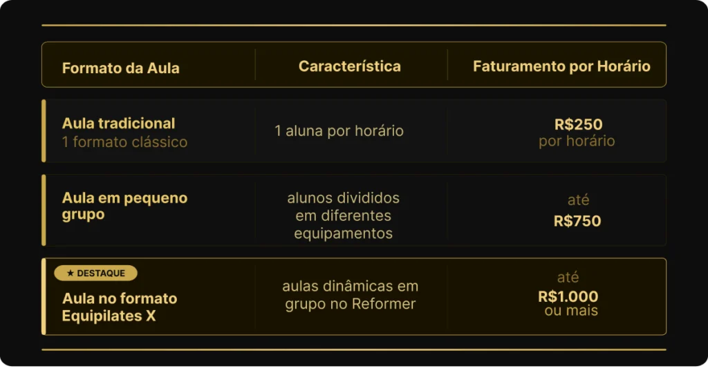 Agora veja como o faturamento pode mudar dependendo da forma como as aulas são estruturadas.